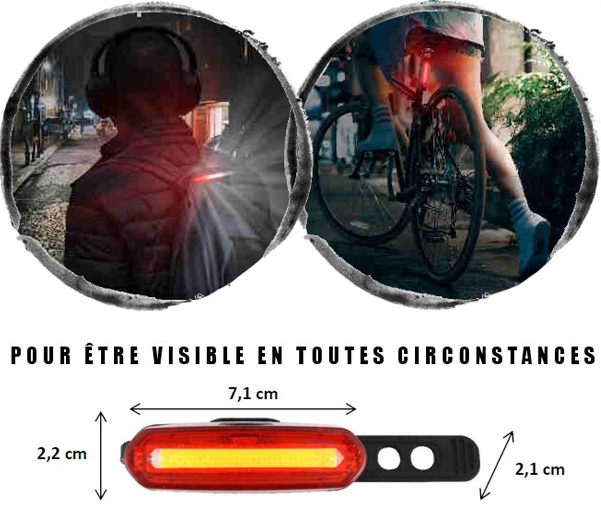 INCLUS : 1 câble de 25cm (USB / Micro USB) + 1 lampe rechargeable par Micro USB + 1 support de fixation en silicone (diamètre réglable de 15mm à 35mm)