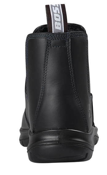 La chaussure de sécurité haute BOSSEUR LIBERTO en cuir noir ciré pleine fleur associe protection, résistance à la flamme et confort. Normée S3 SRC, elle intègre un embout fibre de verre et une semelle anti-perforation Texon HT2. Disponible en noir, pointures 36 à 48.