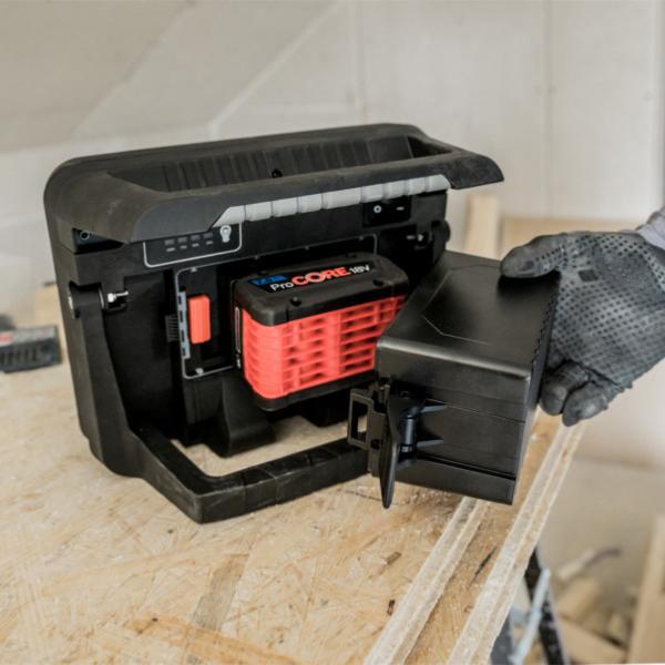 Compatibilité avec les standards de batterie 18V rechargeables (différentes capacités en Ah) des fabricants d'outillage électrique (Powertool) : Bosch Professional, Dewalt, Einhell, Fein, Festool, Flex, Hikoki, Makita, Metabo CAS, Milwaukee et Würth