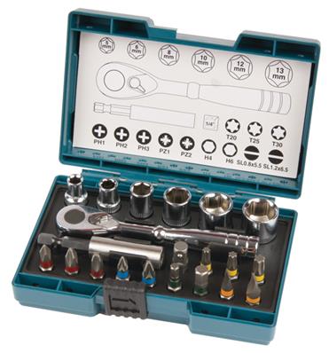 MAKITA COFFRET DE 21 EMBOUTS DE  VISSAGE + CLÉ A CLIQUET
