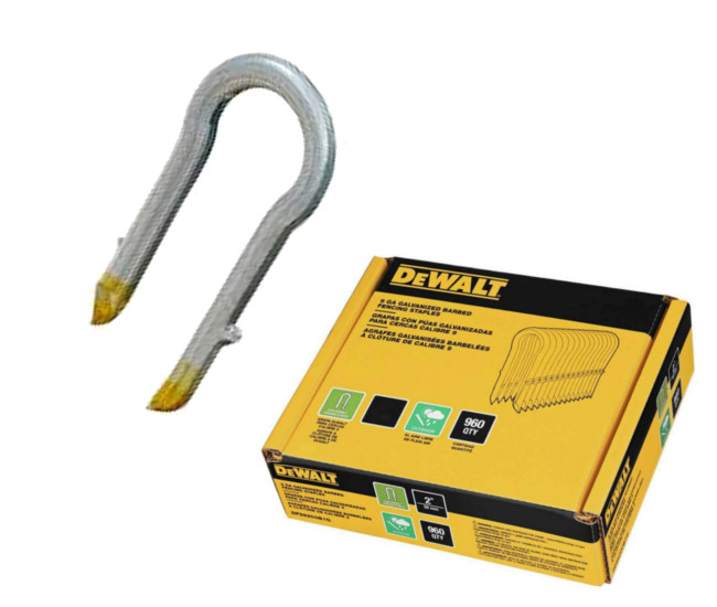 Exclusivement conçues pour l'agrafeuse DEWALT à clôture, ces agrafes crantées électro-zinguées 9 Ga sont disponibles en 40, 45 ou 50 mm.