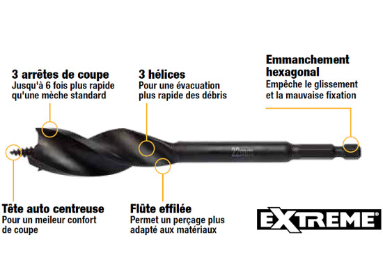 3 arrêtes de coupe ! Jusqu'à 6 fois plus rapide qu'une mèche standard