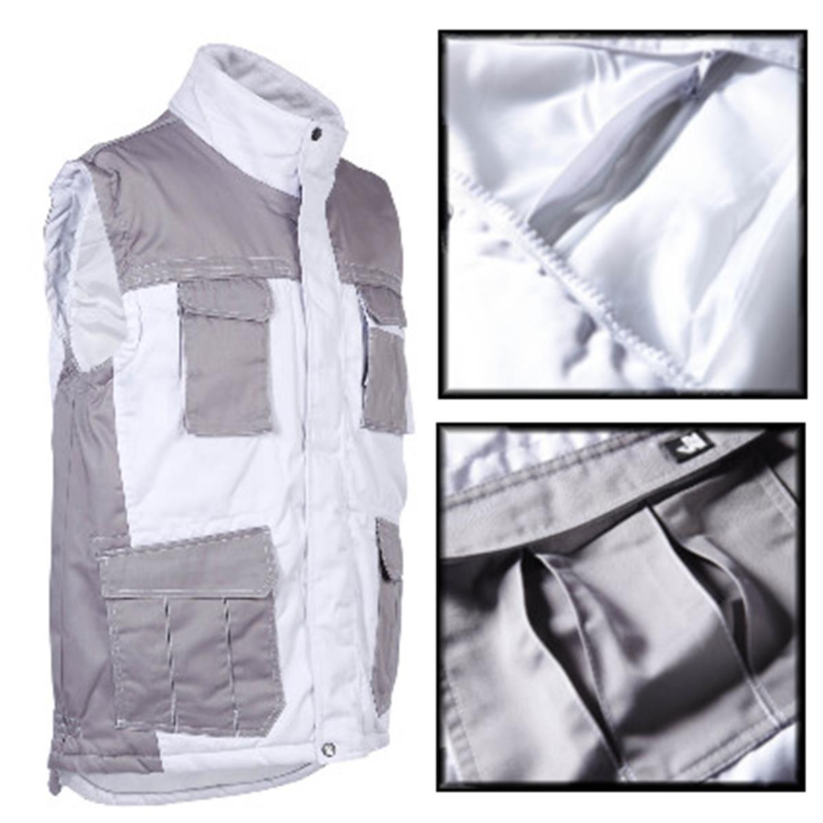 Ce gilet de travail sans manches, réalisé en sergé polycoton déperlant, vous apporte confort, chaleur, et vous protège contre la pluie et l'humidité. Grâce à son col doublé polaire et à sa coupe protège reins, il est le gilet sans manches indispensable aux professionnels. Possédant de nombreuses poches, à rabats, repose-mains ou encore smartphone, il est également équipé de porte-stylos et de porte-clefs. Il saura vous accompagner sur tous les terrains et par tous les temps. Il est décliné dans une large gamme de coloris, propre à chaque corps de métier : professionnels du bâtiment, plaquistes, peintres, agriculteurs, pépiniéristes, métiers de la logistique. Existe en gris/noir, noir, blanc/gris.