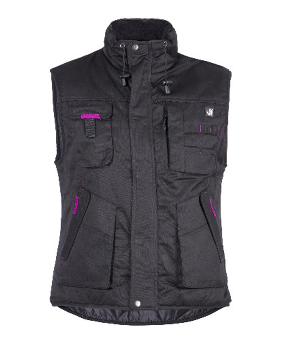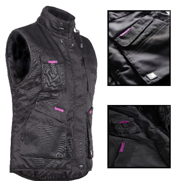 Enfin un gilet de travail pour femme ! En sergé déperlant, ce gilet sans manches pour femme apporte douceur et chaleur grâce à son col doublé polaire et à son matelassage. Sa coupe plutôt droite protège bien les reins. Il bénéficie également de nombreuses poches dont une poche téléphone. C'est le gilet sans manches qu'il vous faut, mesdames !