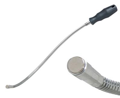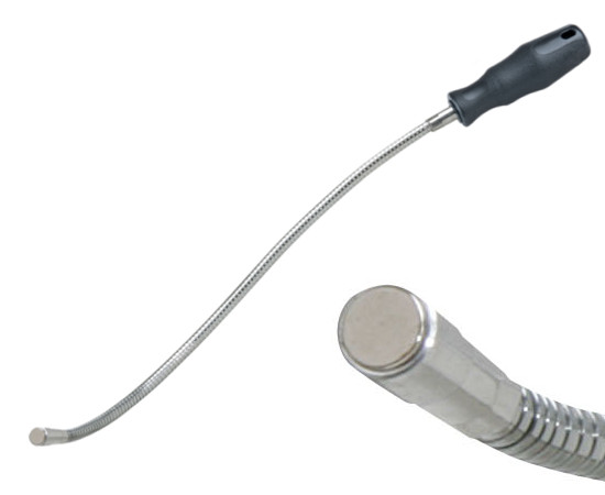 Tige flexible avec aimant à son extrémité pour attraper une pièce métallique hors de portée.