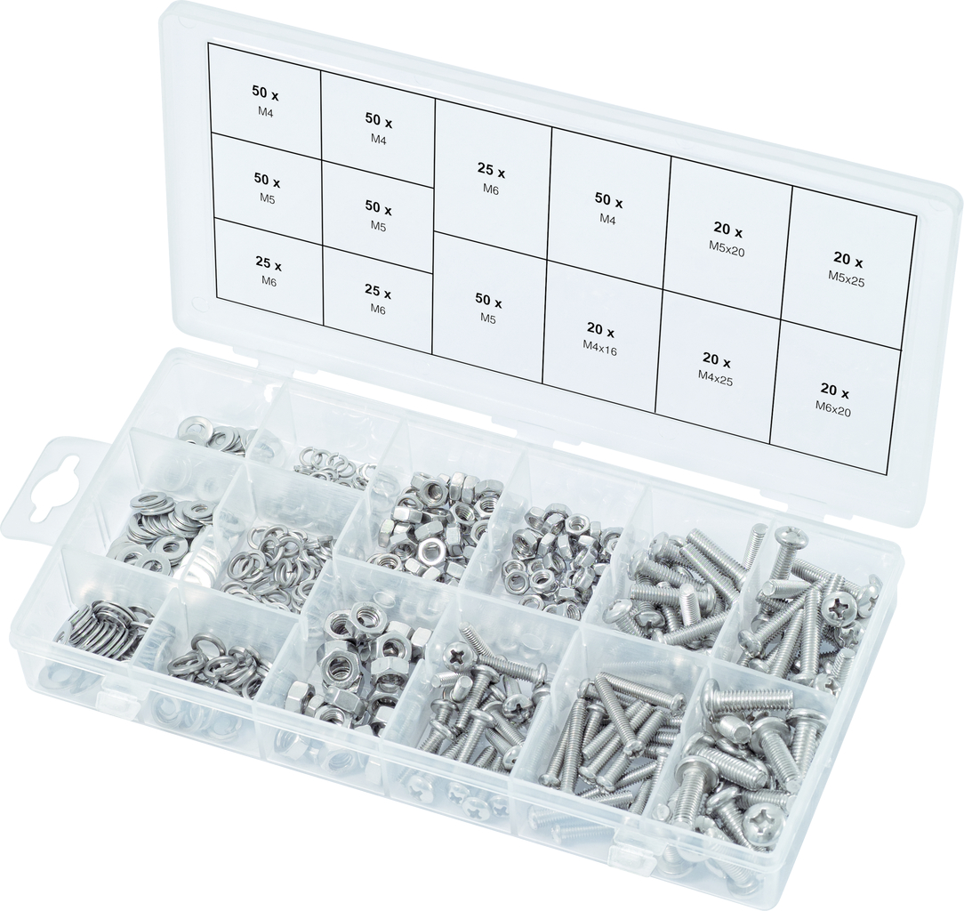 ASSORTIMENT DE VIS, RONDELLES ET ÉCROUS EN INOX, 475 PCS - KS TOOLS