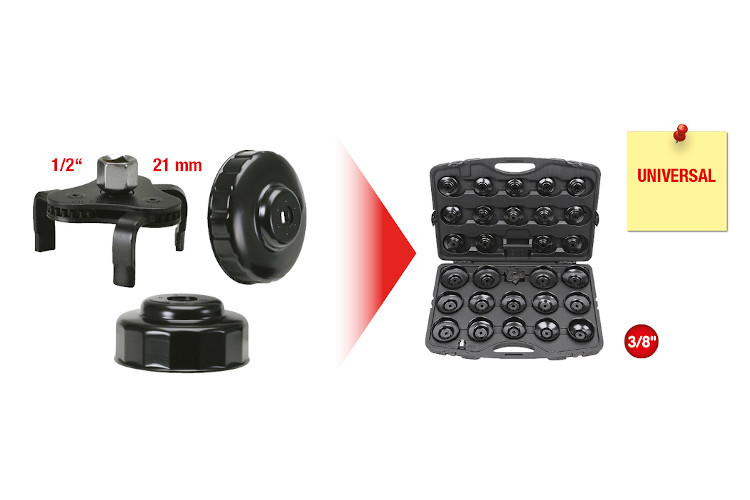 Idéalement adapté au démontage et remontage des couvercles de filtre à huile difficilement accessibles lors du remplacement du filtre à huile.