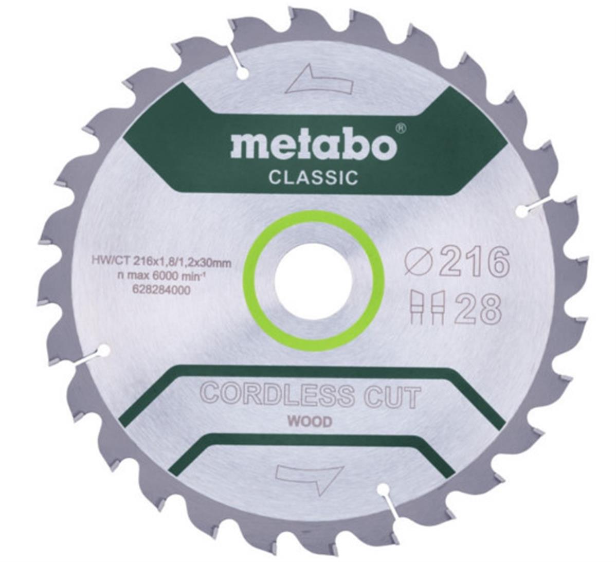 LAME SCIE CIRC CLASSIC "CORDLESS CUT WOOD" 216X30 28 WZ 5° METABO