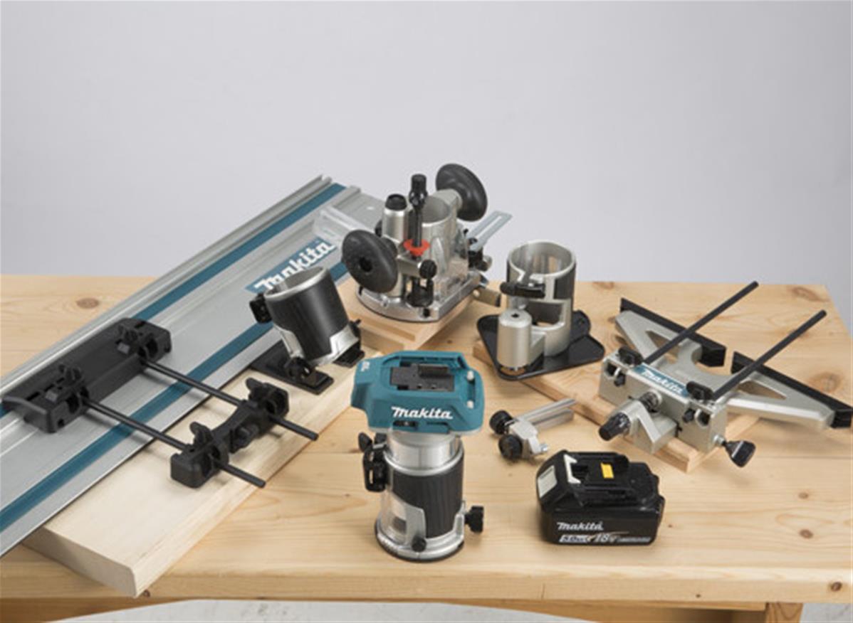 MAKITA Affleureuse 18 V 5 Ah 8 mm + kit d'accessoires
