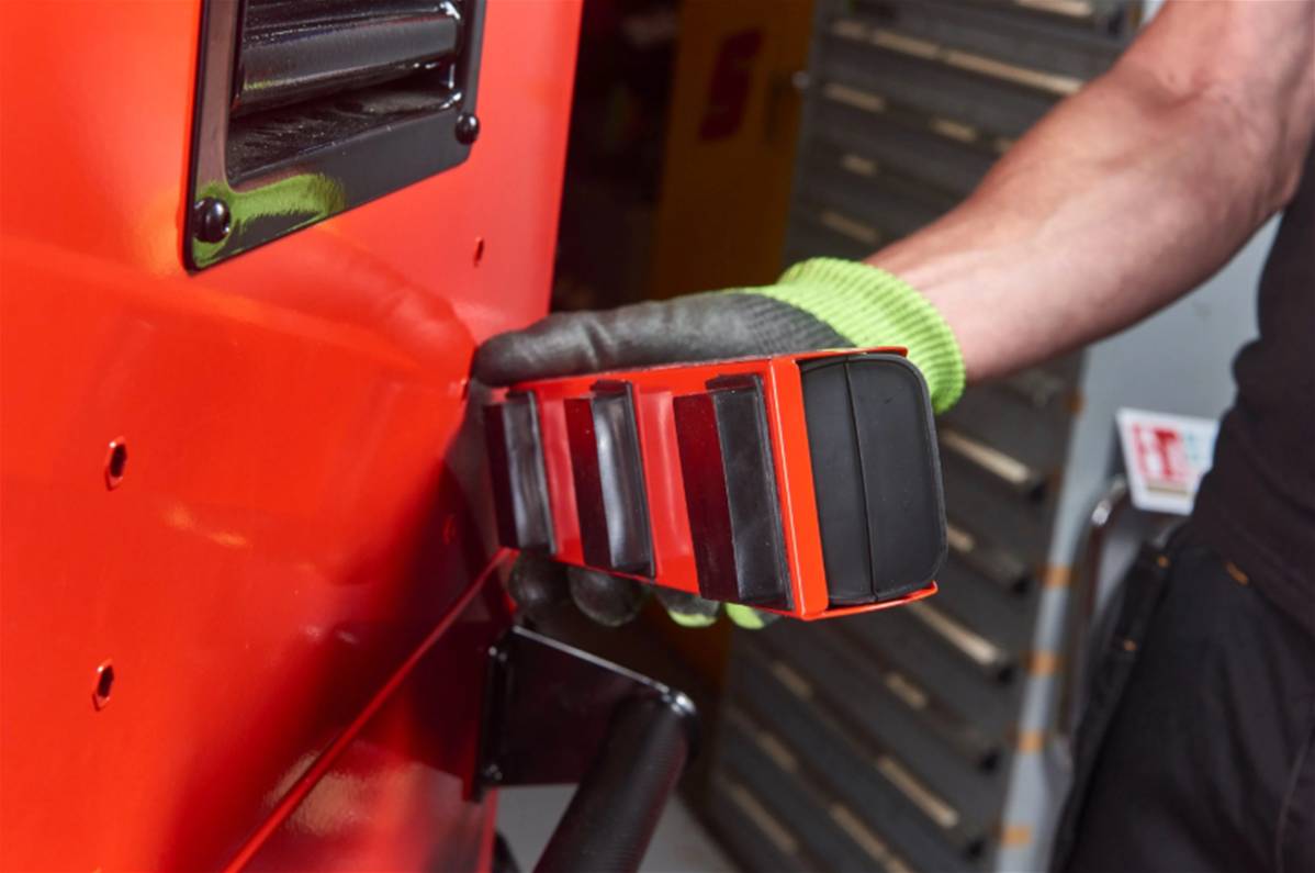 La barre d'alimentation magnétique permet de charger les batteries directement sur le chariot.