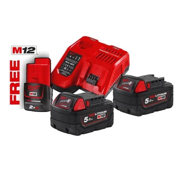 Pack de 2 Batteries 18V 5,0 Ah Li-ion avec Chargeur Rapide - Milwaukee M18 NRG-502 4933459217