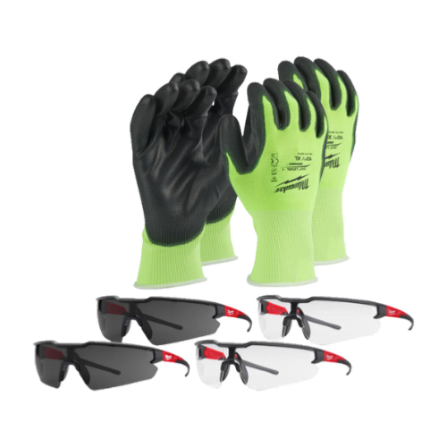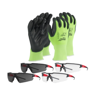 Kit de démarrage contenant des gants trempés résistants aux coupures pour une excellente performance de préhension, ainsi que des lunettes de sécurité améliorées claires et teintées avec des verres antibuée et résistants aux rayures. Aide l'utilisateur à rester en sécurité tout en travaillant.