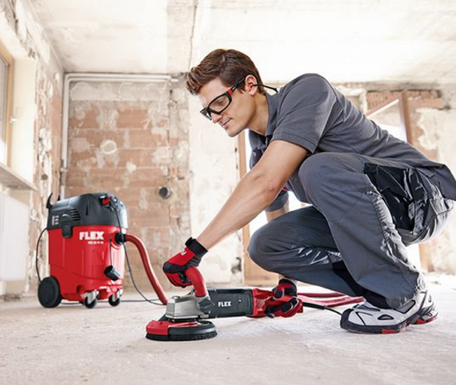 • Dispositif d'aspiration : protège contre la poussière abrasive, diminue l'usure des disques, prépare le béton aux nouveaux revêtements. Cette machine doit être impérativement connectée à un aspirateur industriel FLEX