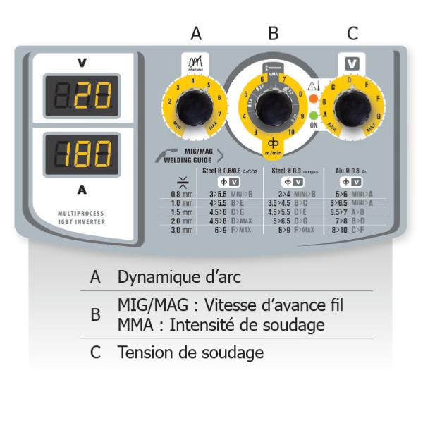 Très facile à transporter sur site, il est recommandé pour le soudage de l’acier, inox et l’aluminium jusqu’à 3 mm d’épaisseur (MIG/MAG).